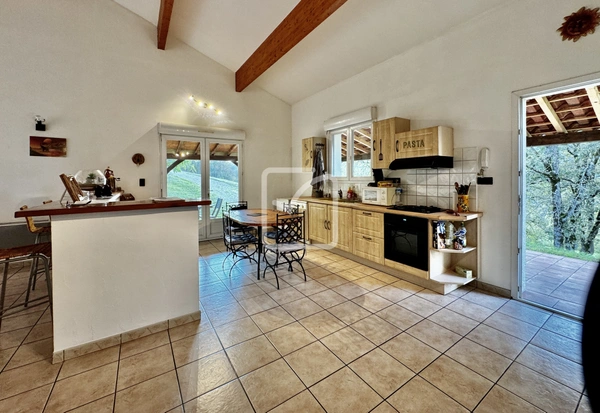 Charmant Pavillon Contemporain avec Grand Terrain Arboré et Double Garage Indépendant À Frayssinet, dans un cadre privilégié et paisible, ce pavillon contemporain de 124,52m2 avec 3 chambres sur 5 580 m2 de terrain arboré est l'alliance parfaite de confort et de modernité. Construit en 2004 avec des matériaux de qualité, il offre un espace de vie spacieux et lumineux où il ne reste qu'à poser vos valises ! Description des espaces : Pièce de vie : Spacieux salon avec cuisine américaine équipée et un insert à bois pour des soirées conviviales, ouvert sur l'extérieur pour profiter pleinement du jardin. Espace nuit : Trois chambres confortables avec rangements intégrés, une grande salle de bain avec baignoire et douche, et un espace buanderie/cellier fonctionnel. Double garage indépendant : Situé sur la partie haute du terrain, ce garage de grande capacité est équipé en eau et électricité, parfait pour bricolage ou stockage. Environnement et cadre : Avec son terrain arboré de 5 580 m2, cette propriété offre un havre de paix pour les amoureux de la nature, tout en restant proche des commodités. Taxe foncière : 1 044 EUR Informations et visites : Pour plus d'informations et pour une visite : Olivier ECOEUR ImoConseil 0625653718