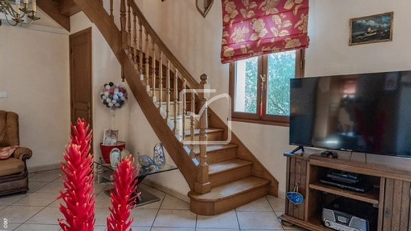 L'ensemble est situé en position dominante d'un parc de 1372 m2, entièrement clôturé et paysagé, PISCINABLE sur sa totalité.