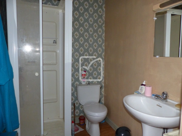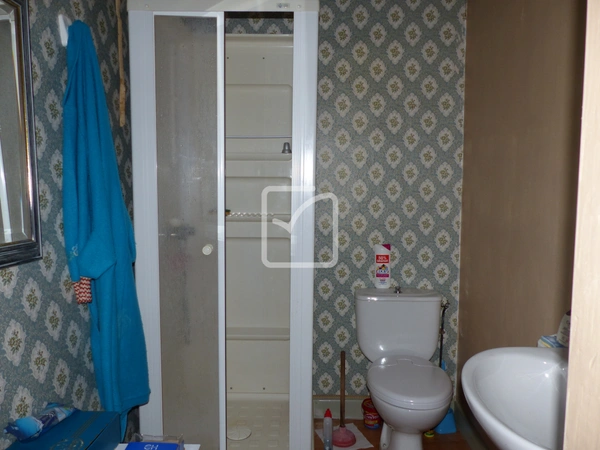 - MAISON D HABITATION Habitable succintement : CUISINE, SALLE A MANGER (24 m2) CHAMBRE 1 (14 m2) CHAMBRE 2 (11 m2) SALLE D EAU, COMBLES de 46 m2 AMENAGEABLES, CAVE 46 m2 avec CHAUDIERE au GAZ