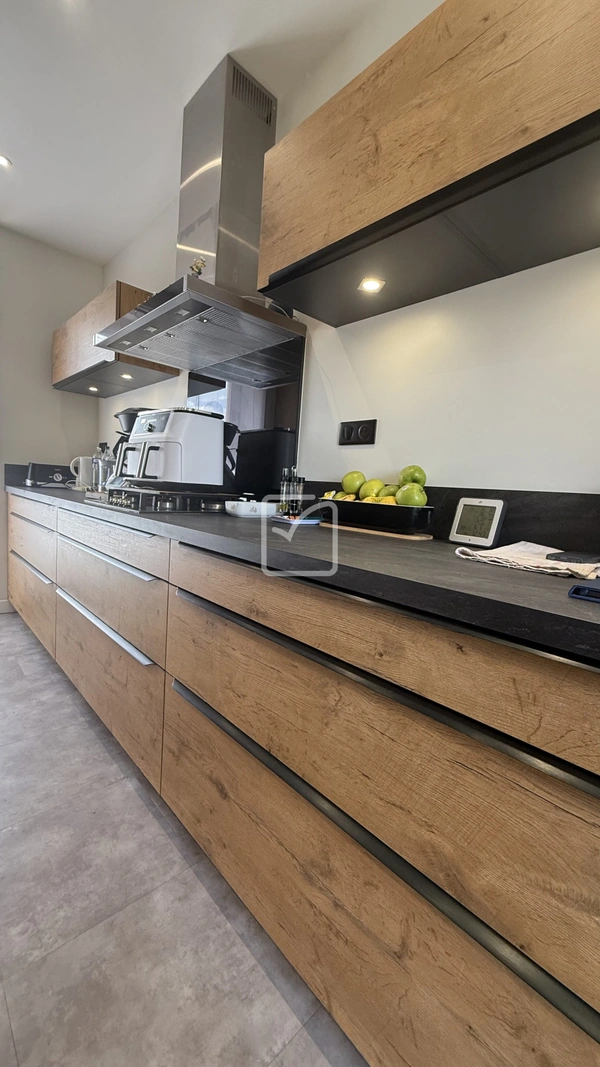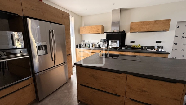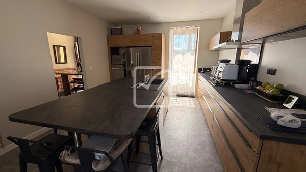 - Au rez-de-chaussée : une cuisine moderne et équipée, un vaste salon avec insert, une buanderie, une chaufferie, un petit garage (pouvant être transformé en suite parentale de plain-pied), ainsi que plusieurs caves.L'extérieur s'ouvre sur une cour intérieure en béton désactivé, esthétique et fonctionnelle, idéale pour vos aménagements extérieurs.