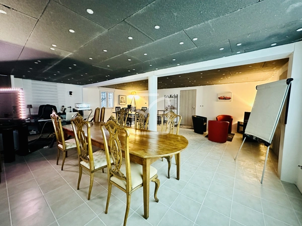 Découvrez cette élégante maison de ville de 270 m2 située au coeur de Gourdon, construite en 1997 sur un terrain paysagé de 317 m2. Cette propriété, répartie sur trois niveaux, offre un cadre de vie confortable avec un jardin clos et un garage indépendant, le tout à moins d'un kilomètre du centre-ville historique, de ses commodités, du marché, du cinéma et de la gare 'Paris-Toulouse'. . Description des espaces : . Rez-de-chaussée : Une entrée accueillante et lumineuse ouvre sur une vaste pièce de vie de plus de 60 m2 comprenant un séjour avec poêle à bois et une cuisine moderne avec îlot central. Cette pièce de vie s'étend sur une terrasse dallée, couverte d'un store électrique de 6 x 3,50 m, parfaite pour vos moments de détente. À ce niveau, deux chambres confortables, une salle de bains balnéo avec douche et des WC complètent l'espace nuit. Premier étage : Accessible par un large escalier, ce niveau accueille deux chambres d'hôtes avec chacune leur propre dressing, salle de bains et WC. Un espace fitness et un grand dressing/rangement viennent parfaire cet étage. Rez-de-boulevard : Ce niveau propose deux espaces distincts : un studio indépendant de 70 m2 avec coin cuisine, bureau/chambre/studio, salle d'eau et WC, offrant de multiples possibilités, ainsi qu'une buanderie, une chaufferie, un espace de rangement et une cave. Les extérieurs : Le jardin paysagé de 200 m2, éclairé et agrémenté d'une terrasse en bois avec jacuzzi, est idéal pour profiter des beaux jours. Un garage indépendant de 30 m2 avec portail électrique, atelier et fosse pour voiture permet un accès direct au jardin. Confort et équipements : La maison est dotée de triple vitrage 'anthélio & phonique' pour un confort thermique et acoustique optimal. Un système de chauffage au sol 'Viessman fuel' couvre les deux niveaux principaux, complété par un chauffage électrique pour le rez-de-boulevard. Quelques travaux restent à terminer pour exploiter pleinement le potentiel de cette propriété. Ne manquez pas cette opportunité unique d'acquérir une maison contemporaine alliant espace, fonctionnalité et proximité avec le coeur de Gourdon !