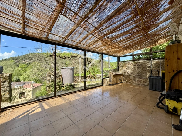 Les grandes ouvertures de cette maison de 1870 apportent un charme certain aux lieux et mettent en lumiére la pierre et les poutres typiques aux bâtisses de l'époque.