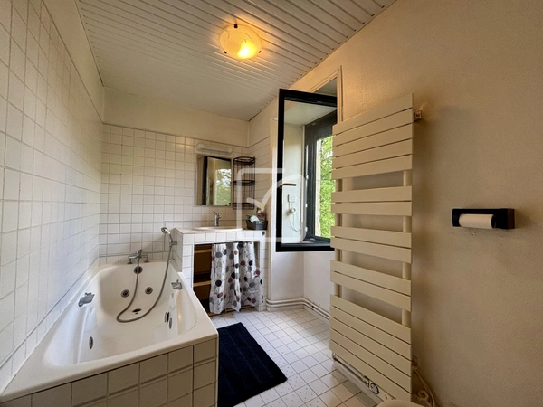 A l'étage, deux chambres dont une suitée avec une salle d'eau. Une salle de bain indépendante trouve également sa place.