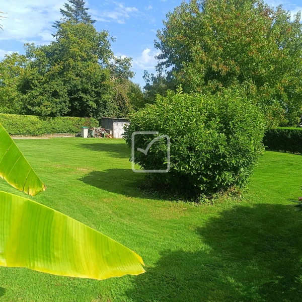 Nous entrons par un portail électrique, nous découvrons un jardin très bien entretenu, arboré, sans vis à vis.