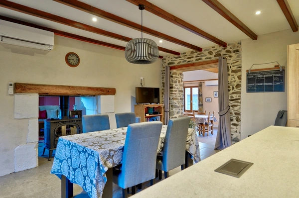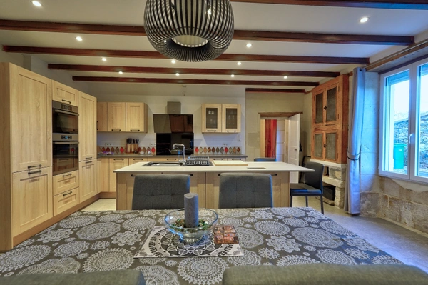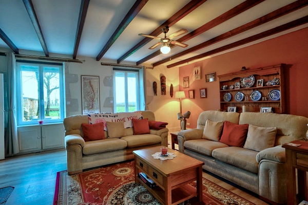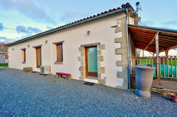 Visite virtuelle disponible - Située au calme avec vue dégagée sur la campagne, à 10 mns de Coulonges sur L'Autize et 30 mns de Niort, cette fermette parfaitement entretenue propose de grandes pièces de vie et un bel espace extérieur avec plus d'un hectare de prairie. L'habitation a fait l'objet de travaux de rénovation récents pour faire apparaitre poutres et murs en pierre, et propose au RDC : Entrée avec poêle à bois, cuisine avec coin-repas 32,7m2, salon 31,90m2 avec poêle double-face, quelques marches descendent vers une grande salle à manger lumineuse grâce aux velux, cellier, buanderie, wc, et une chambre. À l'étage : palier aménagée bureau, couloir qui dessert 2 chambres et une salle de bains/wc. Au bout du couloir, la chambre principale dispose de son dressing et d'une salle de bains/wc privative. Un dépendance en façade qui peut servir d'atelier, avec son carport. Une autre dépendance sur l'arrière (serre-bois, abri de jardin). Terrain avec une mare. Terrasse couverte côté Sud pour observer la campagne et sa propre prairie. Assainissement récent, 12 panneaux photovoltaïques, 3 pompes à chaleur air/air et 2 poêles à bois pour le chauffage. Votre contact : Pierre Dessombs 0684694900 - pierre.dessombs@imoconseil.com - Fluent english speaking local agent
