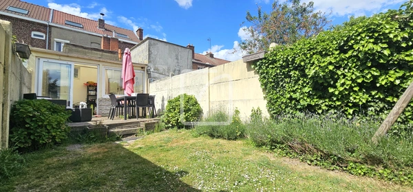 Maison de 90 m2 de 5 pièces dont 3 belles chambres avec jardin et véranda orientés plein sud de 112 m2 , située dans une petite rue calme avec stationnement aisé