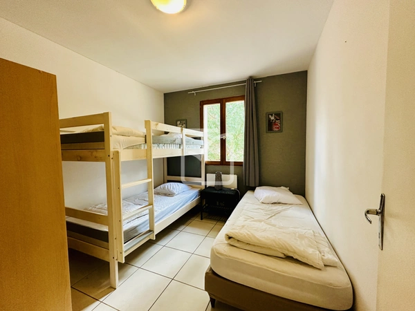 Une salle de réunion d'environ 50m2 réversible en gite supplémentaire, puis 3 gîtes de près de 50m2, qui comprennent chacunune cuisine équipée (micro ondes, plaque, four, lave vaisselle), un séjour avec TV, 2 chambres, une salle de douche avec wc et machine à laver.A l'extérieur, chaque gîte bénéficie d'une terrasse semi couverte, avec salon de jardin, barbecue, parasol et chaises longues.Chauffage électrique avec climatisation et ballon d'eau chaude.