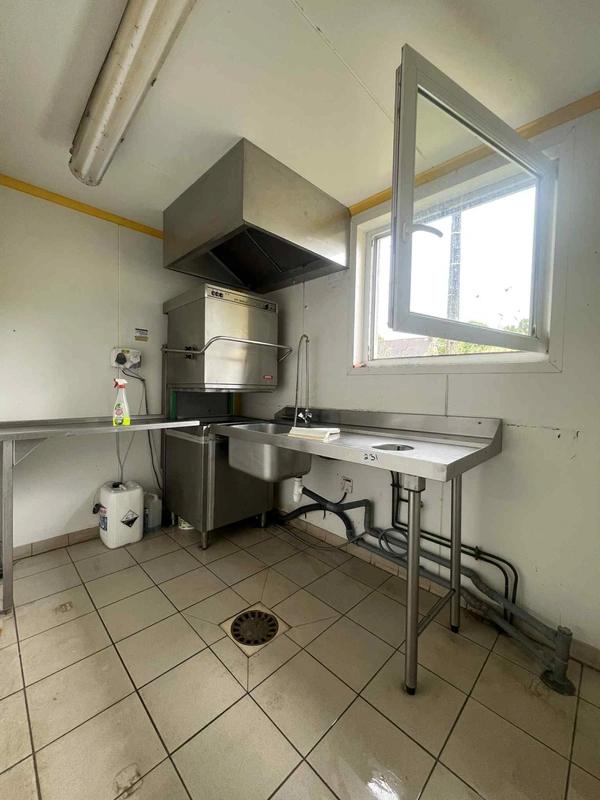il est composé d'une salle de 80 m2, d'un bar, d'une cuisne professionelle (sans le matériel) d'un espace plonge, d'un vestiaire, de 3 WC.d'un petit salon.