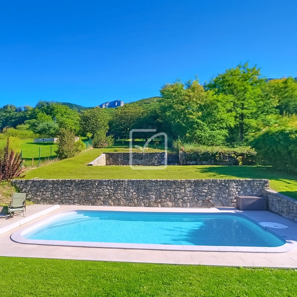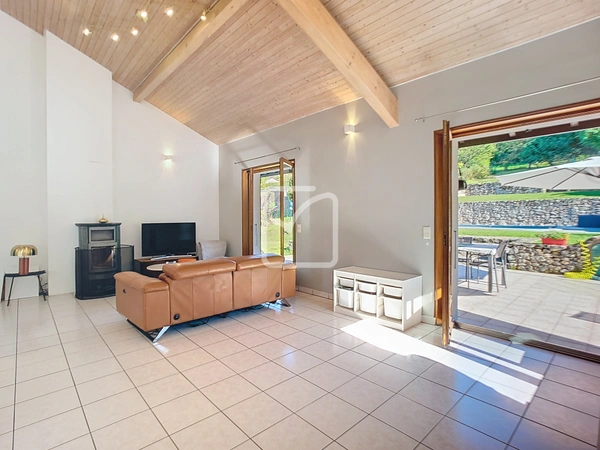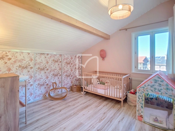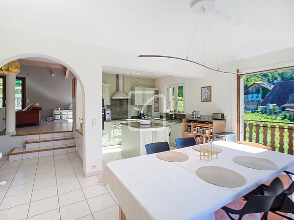 À vendre dans un hameau calme de Lugrin, une belle maison individuelle offrant 140 m2 habitables et 227 m2 utiles, implantée sur un terrain clos et arboré de 1 345 m2. Vous profiterez d'une spacieuse terrasse triple exposition, garantissant un ensoleillement maximal ainsi qu'une vue dégagée sur les montagnes. La propriété dispose également d'une piscine récente sans vis-à-vis, dans un environnement calme et verdoyant. Au fond d'un grand jardin, un petit portail donne directement accès à un sentier idéal pour de jolies balades en lisière de forêt..