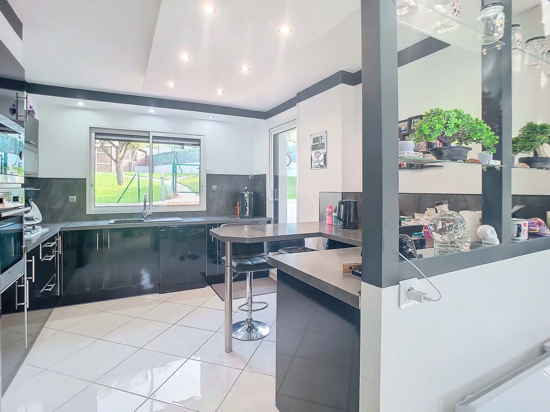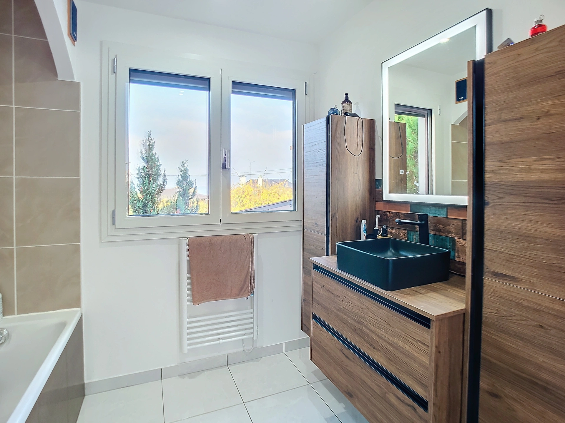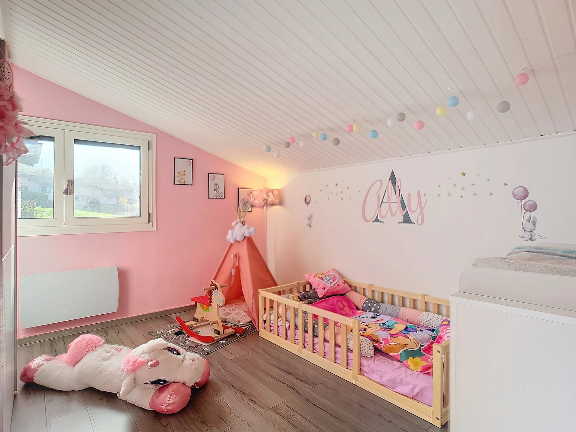 La maison dispose de cinq chambres spacieuses, d'une salle de bains, d'une salle d'eau et d'un WC séparé. La pièce de vie, baignée de lumière s'ouvre sur une vaste terrasse de 85 m2 sans vis-à-vis, parfaite pour profiter de moments de détente en toute tranquillité.