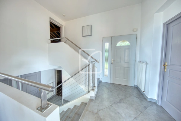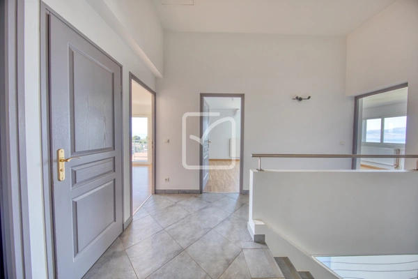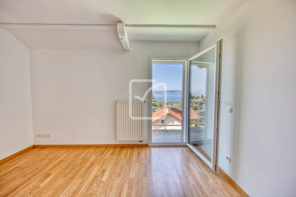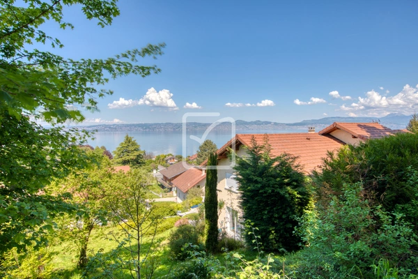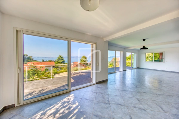 LUGRIN : Spacieuse villa contemporaine de 154 m2 édifiée en 2007, sur un terrain de 1560 m2, avec une très belle vue sur le Lac Léman. Située dans un quartier calme et recherché, à proximité des commodités et à 600m à pied du bord du lac, cette maison présente 5 pièces réparties sur 3 niveaux. Le niveau principal comprend un salon-séjour de 60 m2 avec une cuisine ouverte, donnant sur une terrasse surplombant la piscine. Lumineux grâce aux nombreuses baies vitrées, le salon offre une vue imprenable sur le lac. Cuisine américaine amenagée et équipée. À l'étage, 4 chambres, dont 2 suites (une avec une salle de bain + douche, et l'autre avec une salle d'eau), une deuxième salle d'eau, deux WC séparés, et une chaufferie. Au niveau supérieur, un grand garage double avec portes motorisées et 4 places de stationnement dans la cour. Les prestations comprennent des volets roulants automatiques, la fibre optique, un chauffage au sol dans la pièce de vie, une chaudière récente, et un adoucisseur d'eau.