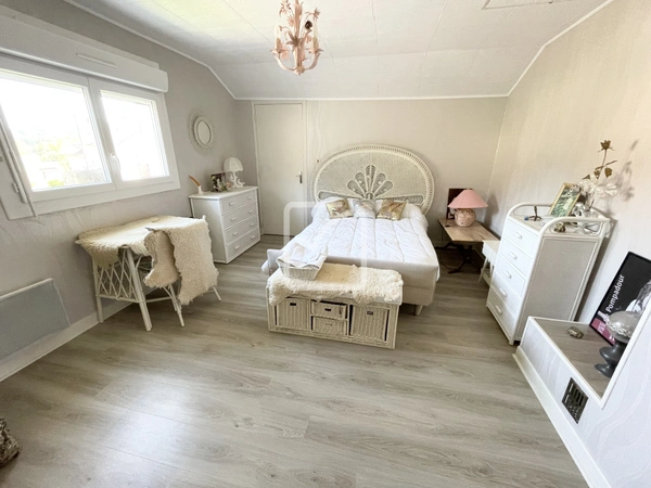 A l'étage, vous trouverez 2 grandes chambres de 14 m2 et 16 m2 avec 2 greniers attenants pouvant faire des dressings, une salle d'eau et un wc.