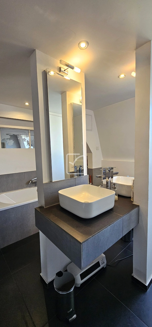 à l'étage 2: Magnifique et exceptionnelle suite parentale de 60 m2 au plafond cathédrale composée d'un dressing, d'une salle de bain contemporaine avec baignoire,douche à l'italienne, wc et d'une mezzanine de 28 m2 au plancher Dans le jardin patio de 80 m2 avec entrée indépendante: Appartement tout confort avec séjour et cuisine et à l'étage chambre et salle d'eau idéal pour grands enfants ou location en Rbnb