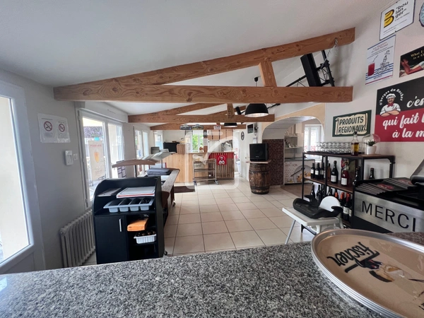 En intérieur une salle de restaurant de 50 couverts, un bar avec licence IV cuisine professionnelle équipée à neuf et une plonge indépendante. L'établissement dispose de deux distributeurs à pizza dont un sur ROCAMADOUR.