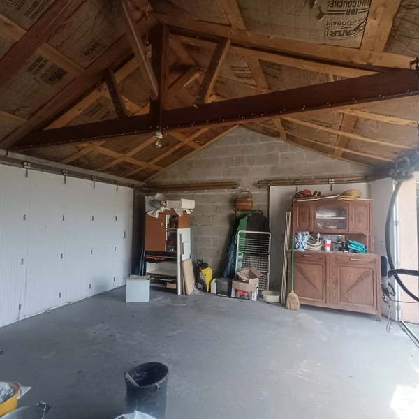 Un double garage donnant sur le beau terrain arboré de 1000 m2 entièrement clôturé compleèe ce bien.