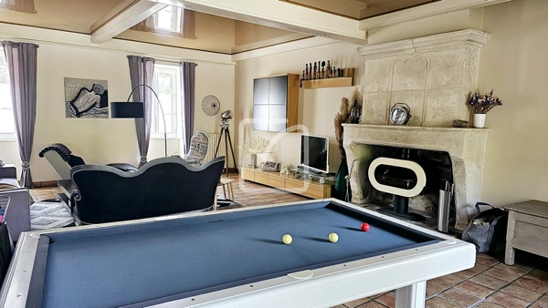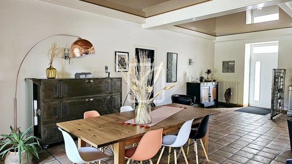 Au rez de chaussée, vous arrivez dasn un grand sallon/salle à manger de 83m2 et une cuisine séparée donnant sur une terrasse toute en pierre, parfait pour recevoir vos invités. Une arrière cuisine, une buanderie, une chaufferie et un atelier des espaces pratiques et fonctionnels pour faciliter votre quotidien qui aménent dans un grand garage d'environ 52m2.