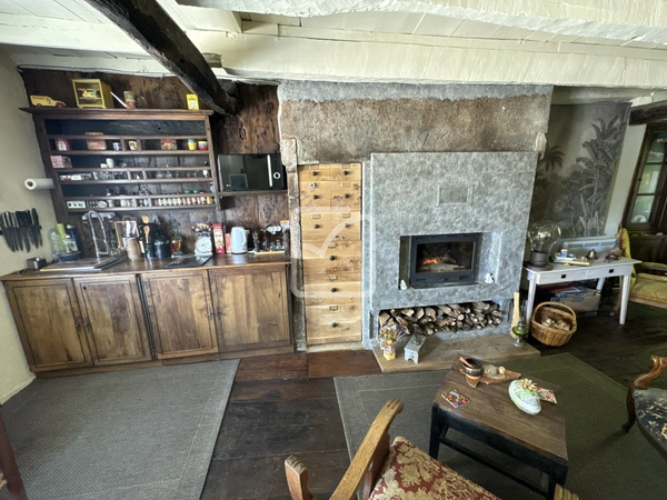 Ornée de parquet en vieux chêne qui confère un charme incomparable. La cuisine, petite mais pleine de caractère, offre un décor rustique avec ses meubles en bois, évoquant une douce nostalgie des temps passés. Mais c'est dans le mariage subtil de l'ancien et du moderne que cette maison révèle toute sa splendeur.