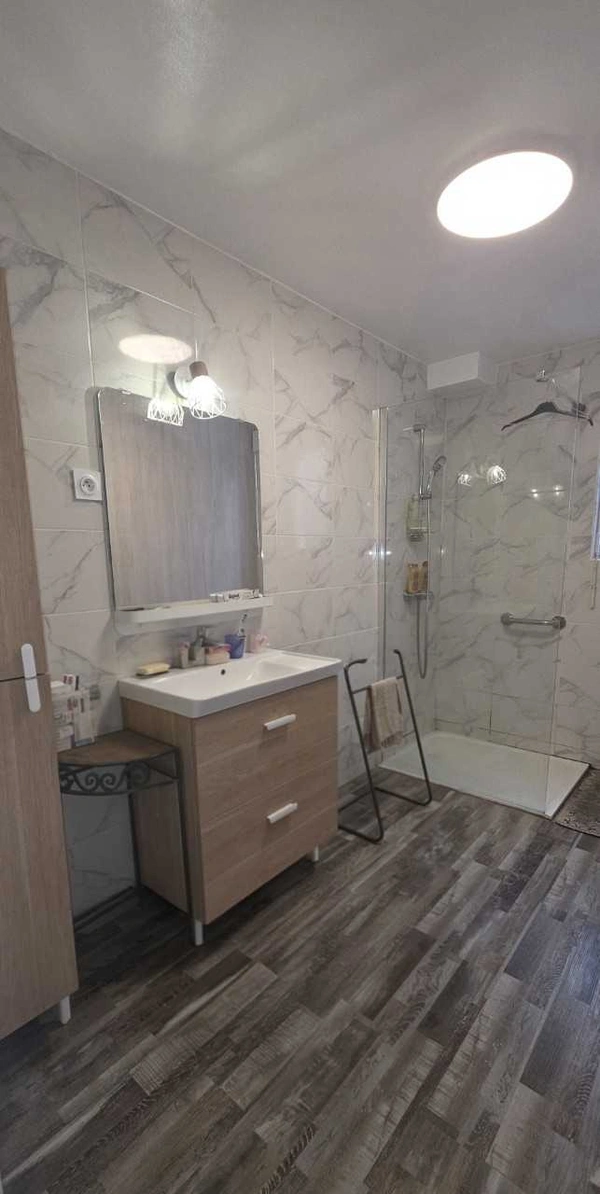Premier logement : grand studio avec salle d'eau, wc et cellier. Actuellement loué par une locataire en place depuis plusieurs années. Revenus locatifs stables.