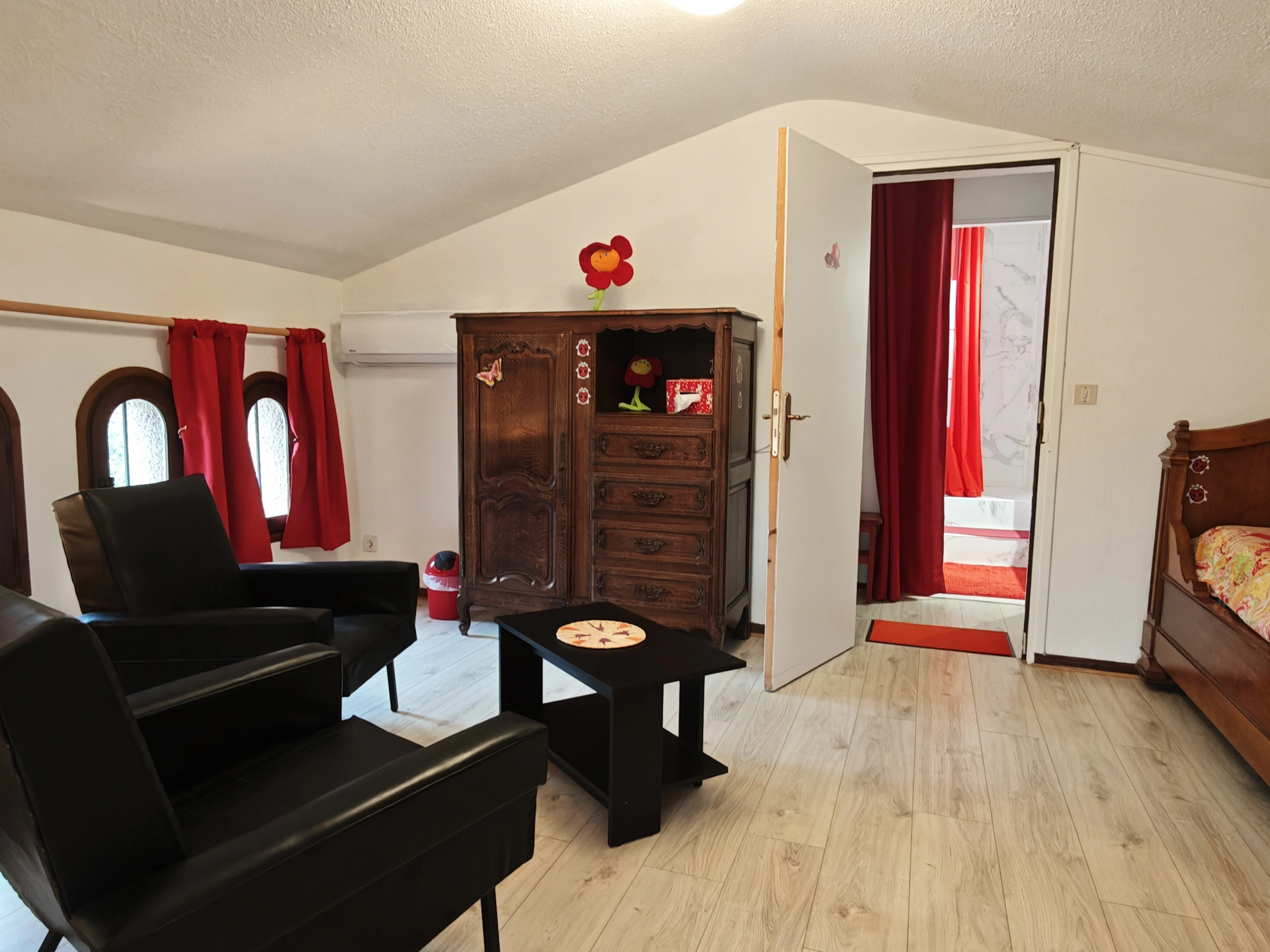 L'étage comporte trois suites.
