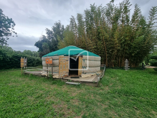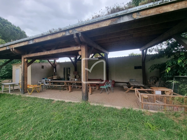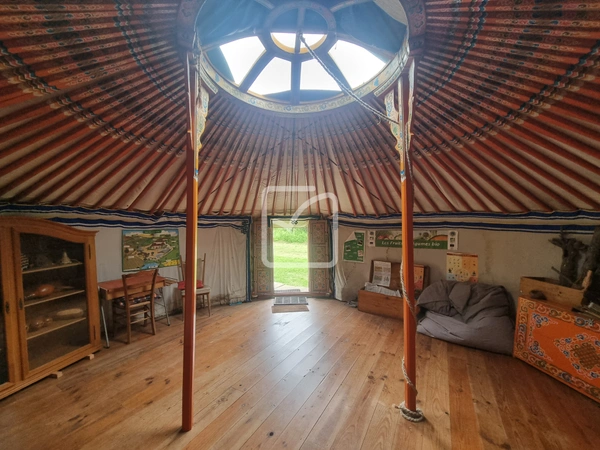 Le terrain et le verger aujourd'hui dédiés à la producution bio sont équipés, d'un préau, de serres, d'un grand hangar et son atelier, sa boutique, de deux wc /douches extérieures, de mobilhomes, d'un yourte permettant d'y accueillir amis ou public.