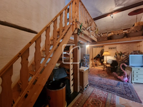 La maison d'habitation et sa grange aménagée comprennent: une belle pièce de vie, 4 chambres, 2 wc, une salle d'eau, un bureau, un cellier, une grande pièce à utiliser à son gré et insonorisée, un vaste étage mezzanine à usage d'immense chambre. Un grand hall d'accueil et une agréable véranda complète la partie habitable. Les terrasses agrémentent l'ensemble.