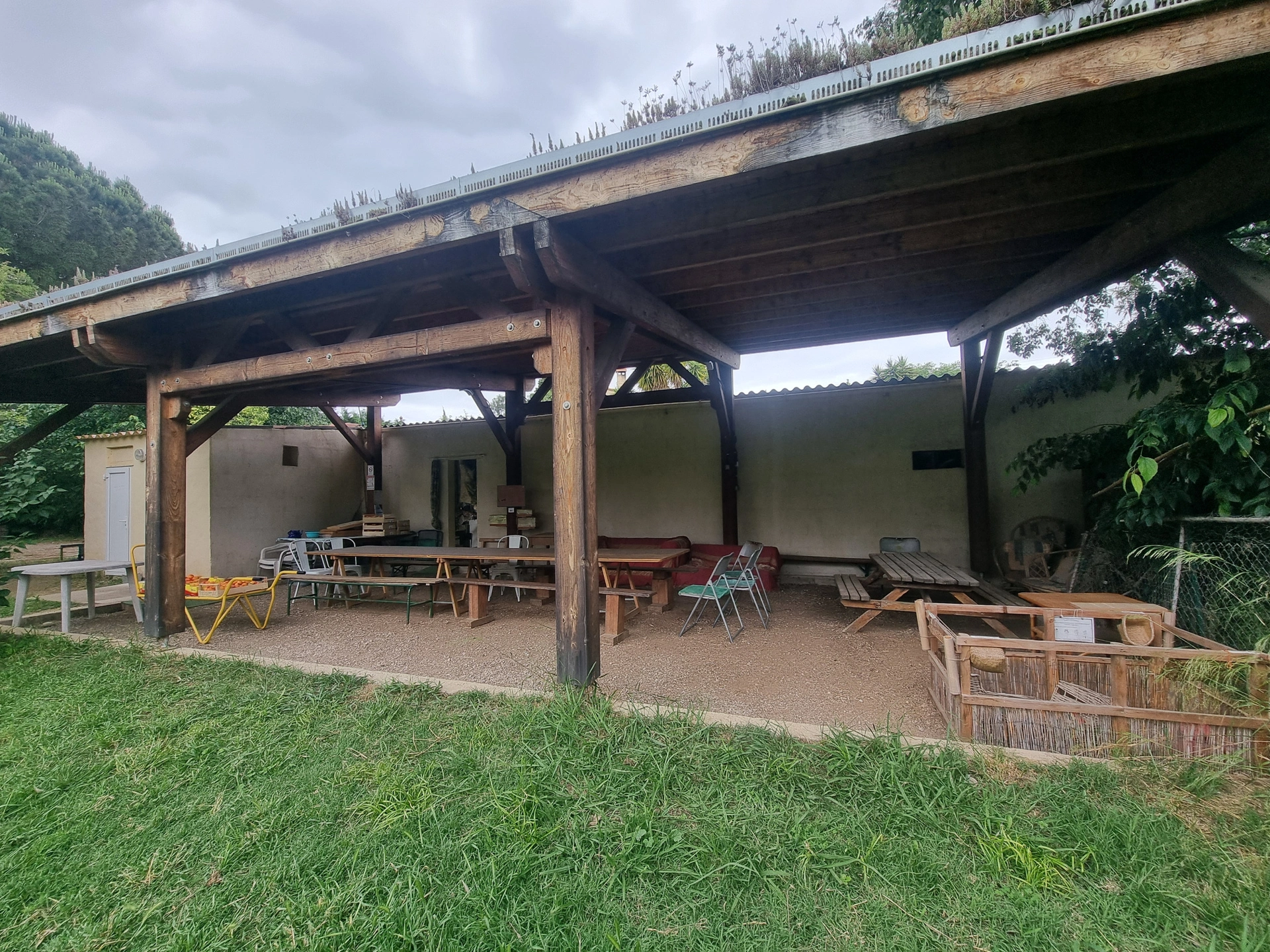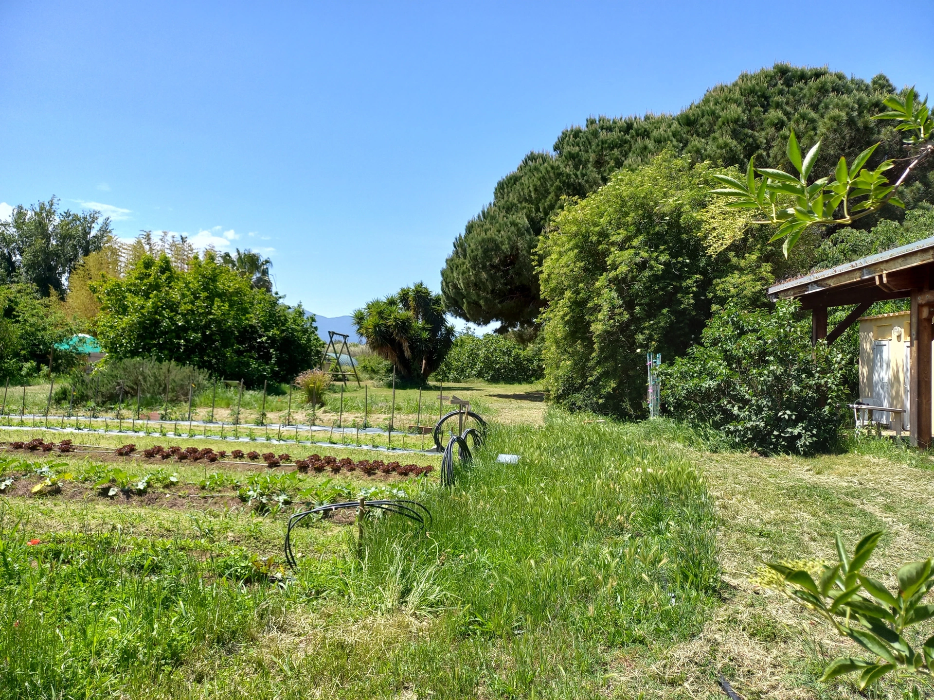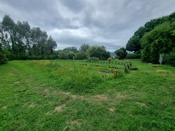 Le terrain et le verger aujourd'hui dédiés à la producution bio sont équipés, d'un préau de 105m2, de serres, d'un grand hangar et son atelier, de son point de vente, de wc /douches extérieures, de mobilhomes, d'un yourte permettant d'y accueillir amis ou public.