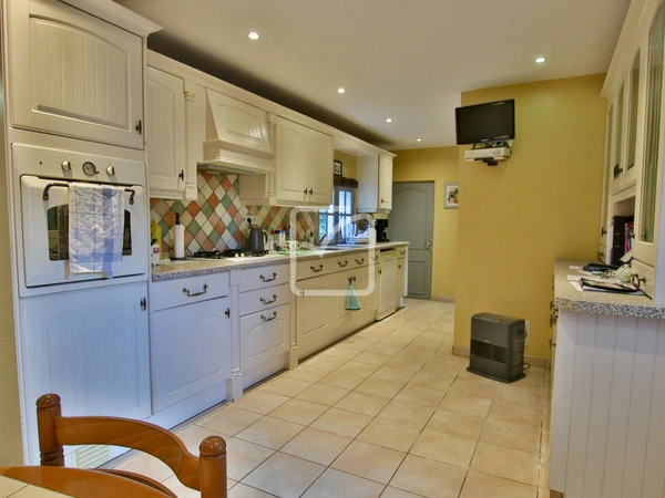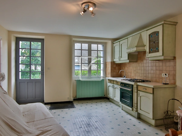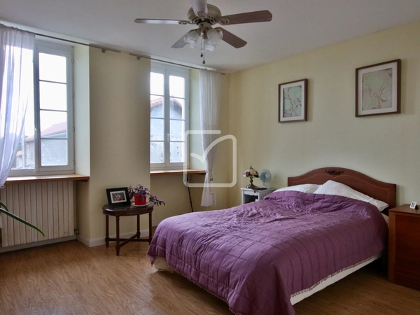 Maison avec gîte et dépendances dans un hameau, proche du village de Pamplie, 15mns de Champdeniers, 30 mns de Niort. La maison est mitoyenne, avec son terrain sur l'arrière et sur le côté uniquement. L'habitation principale d'env. 145m2 dispose d'une cuisine avec grande arrière-cuisine/buanderie, salle à manger avec poêle à bois, salon 30m2 avec poêle à bois également, salle d'eau et wc. À l'étage, 3 chambres de 11 à 15,5m2. Chauffage central fioul. Le logement indépendant est relié à l'arrière cuisine par un couloir : Salle d'eau/wc, séjour/cuisine 18m2 et une pièce ( chambre ) de 18m2. Accès au jardin et dépendances depuis l'arrière-cuisine. Jardin arboré avec potager en contre-bas. Plus de 250m2 de dépendances : Grange haute, ancienne étable, toits à cochon, serre-bois, 2 petites remises en pierre et un ancien garage. Votre contact : Pierre Dessombs 0684694900 - pierre.dessombs@imoconseil.com - Fluent english speaking local agent .