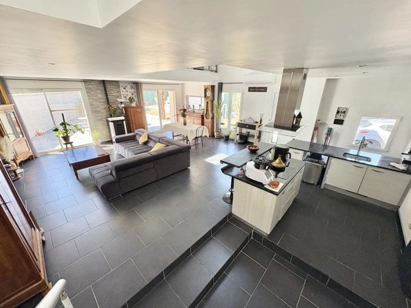 Découvrez cette maison de 168 m2 sans travaux, offrant de beaux volumes et un confort de vie idéal, à seulement 10 minutes de Brive Ouest. Au rez-de-chaussé, une entrée avec véranda, un grand séjour lumineux de 63 m2 avec cuisine ouverte équipée, espace repas et accès direct à la terrasse. Une chambre, une salle de bain avec douche, baignoire et WC.
