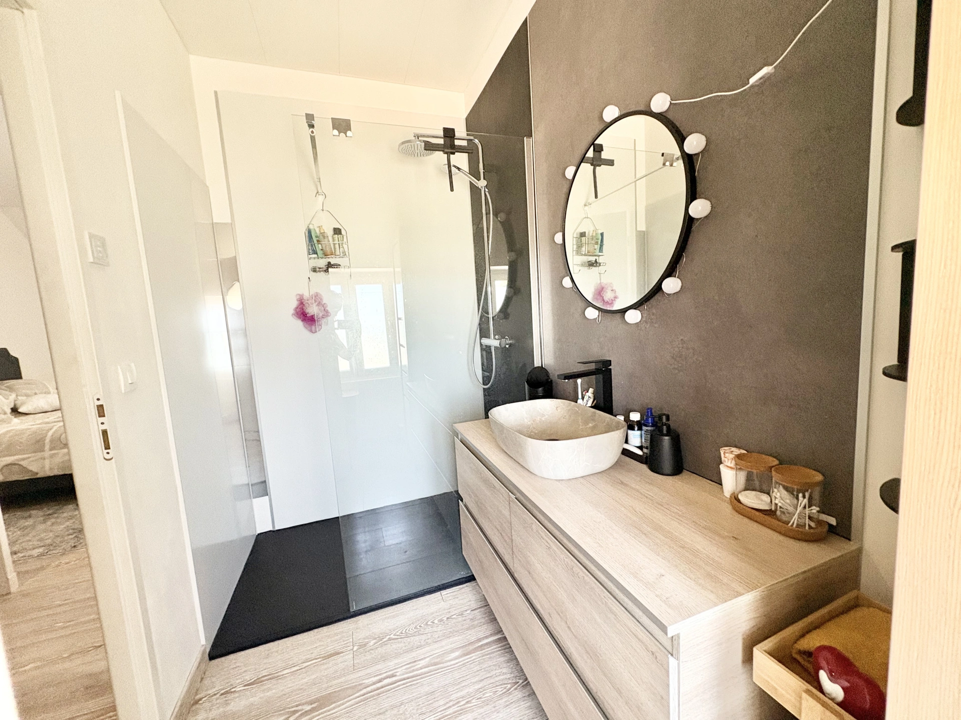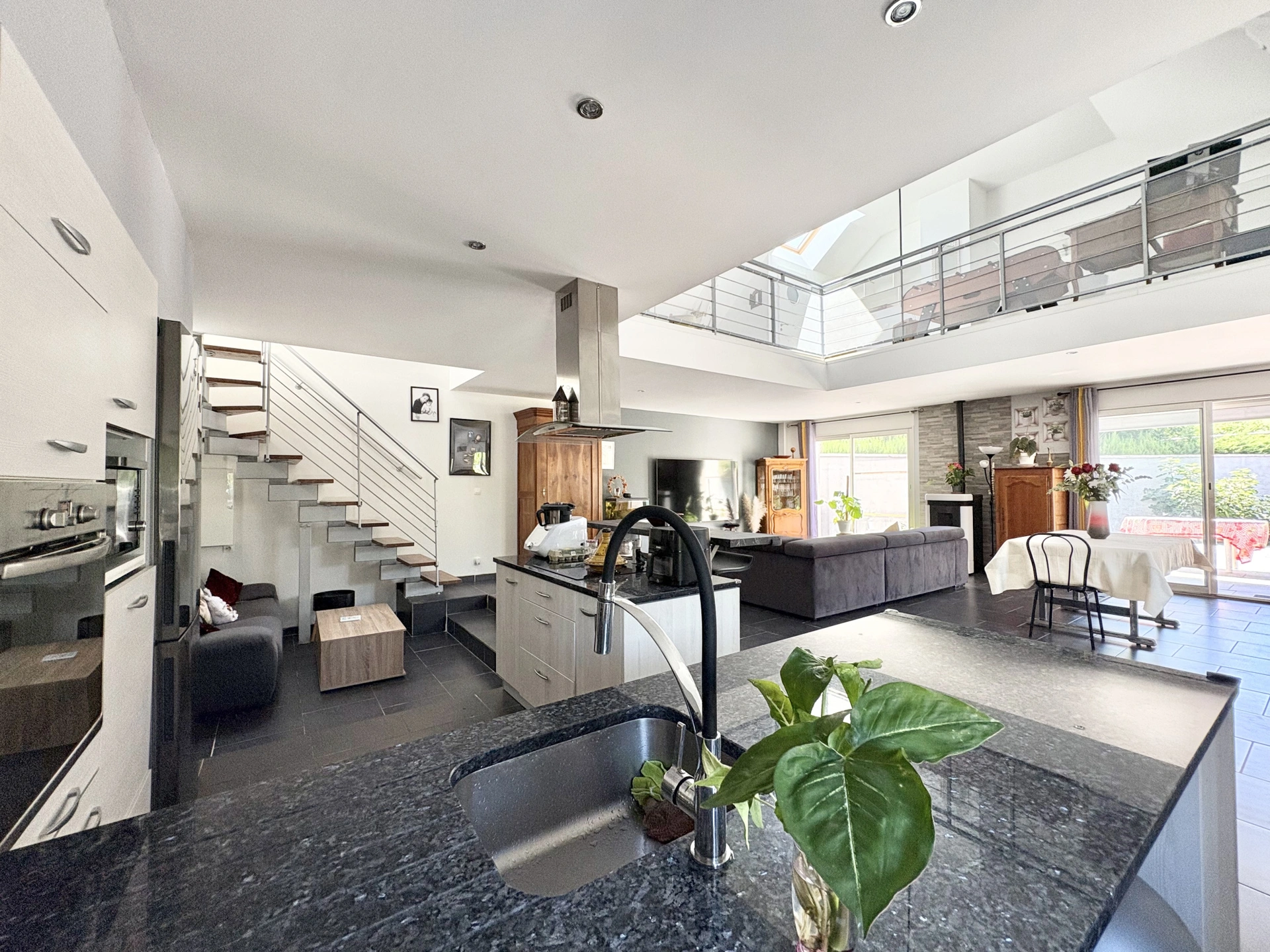 A l'étage, une mezzanine spacieuse, WC, deux chambres supplémentaires et une suite parentale avec grand dressing et salle d'eau privative. Les extérieurs vous offrent un terrain clos de 537 m2, une agréable piscine 7x3.
