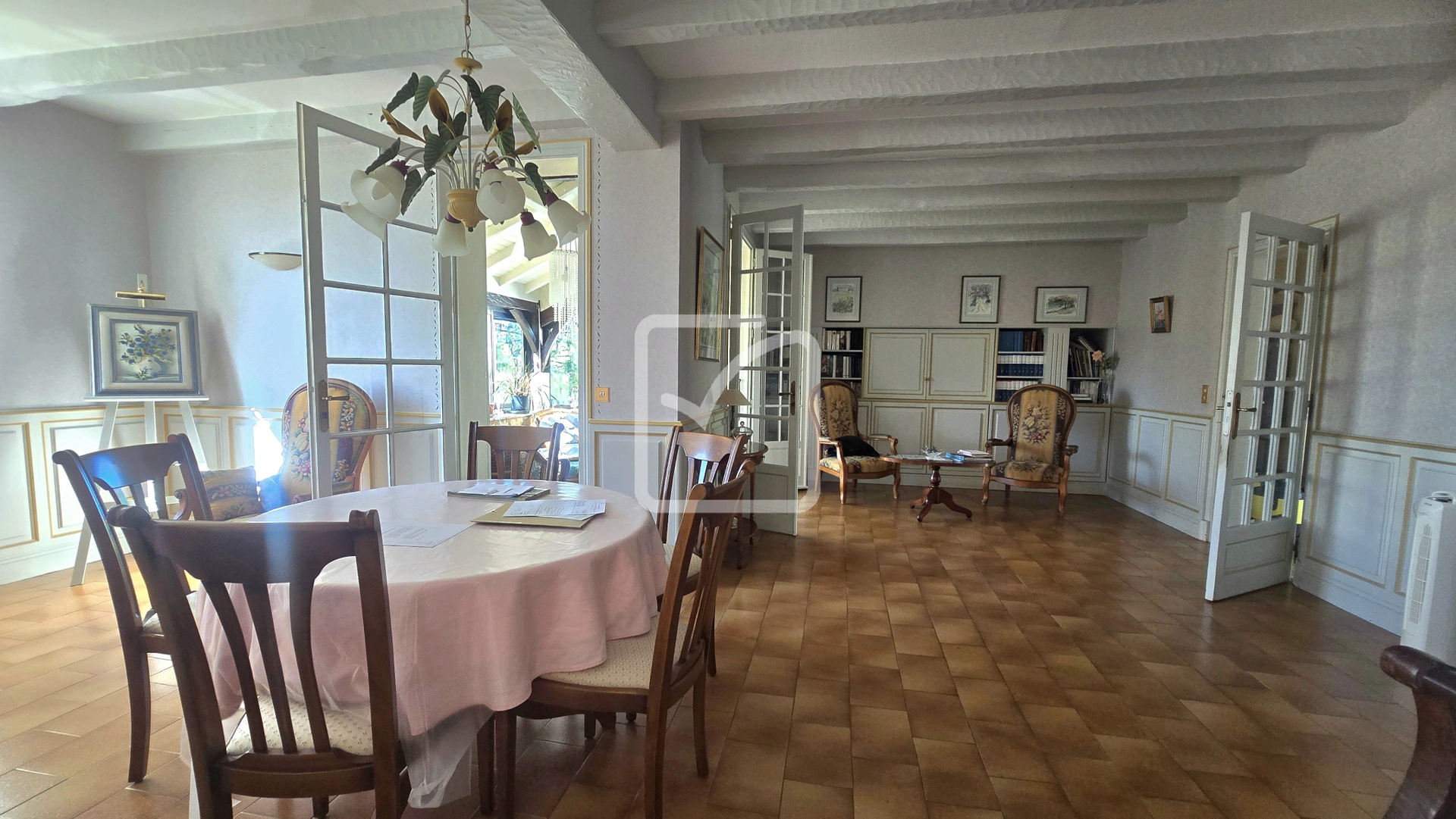 Implantée sur un parc clos, arboré et parfaitement entretenu de près de 3000m2, la propriété dispose également de 2 garages et de plusieurs espaces de stationnement.