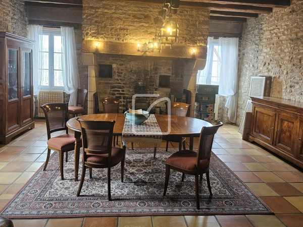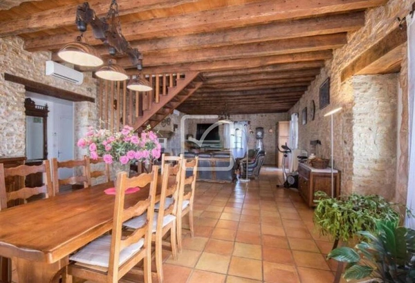 La maison principale, d'une surface d'environ 250 m2 habitables, séduit par ses volumes généreux, notamment une vaste pièce de vie de 80 m2 baignée de lumière, et des éléments anciens soigneusement conservés : cantous, évier en pierre, four à pain, pigeonnier ou encore deux magnifiques caves voûtées. Elle comprend également une cuisine indépendante, quatre chambres et deux salles d'eau.