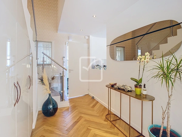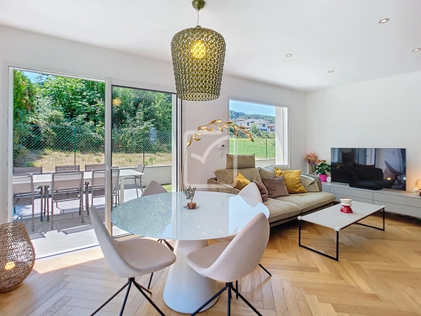Située à Publier, dans un environnement résidentiel calme et recherché, cette maison mitoyenne par le garage offre un cadre de vie agréable et des prestations intérieures de grande qualité, sur une surface habitable de 100 m2. À seulement 5 minutes en voiture de l'embarcadère d'Évian, elle bénéficie d'un emplacement idéal, à proximité immédiate des écoles, des commerces, des transports en commun, ainsi que du prestigieux Golf d'Évian.