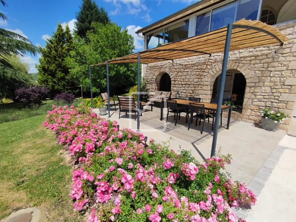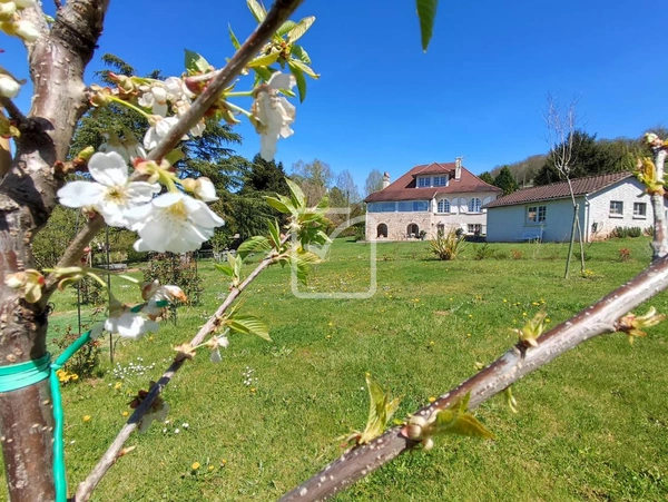 Michèle a le plaisir de vous présenter cette superbe maison bourgeoise en pierre sur un magnifique jardin de 4200 m2. Venez découvrir ce vrai bijou, entièrement restaurée avec beaucoup de goût et des matériaux de qualité, cette maison offre de très belles prestations : isolation et électricité refaites à neuf, cuisine moderne très bien pensée, superbe salon avec son parquet en chêne... Vous y trouverez une véranda donnant sur le parc arboré et fleuri , 2 terrasses, une couverte et une avec pergola, des allées, des murettes, un portail électrique ... De plus un appartement très agréable et lumineux complètement indépendant, en rez de jardin, permet de loger sa famille ou peut être loué pour une rentabilité intéressante. Je ne vous en dis pas plus, je vous ferai découvrir ce joli bien avec beaucoup de plaisir. Le chauffage est au fioul, la chaudière marque Viessmann est en parfait état.