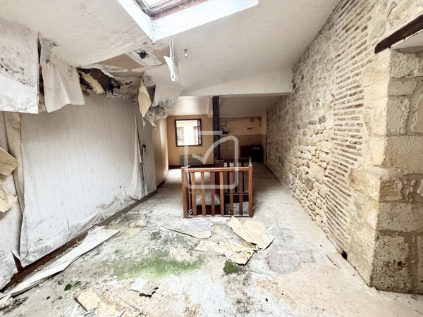 En façade, un local commercial en rez-de-chaussée avec une pièce en vitrine et une sur l'arrière s'ouvre directement sur la rue, idéal pour une boutique, un atelier ou un bureau, à l'étage, deux pièces et une salle d'eau se développe avec une surface d'environ 55 m2 : poutres, murs en pierre et volumes traversants donnent à l'ensemble une atmosphère chaleureuse et typiquement périgourdine.
