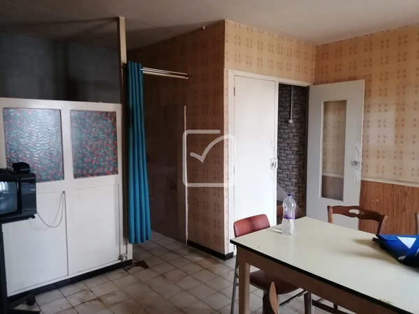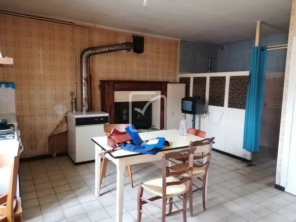 Implantée sur un terrain 576 m2 entièrement clôturé, cette maison en pierre, mitoyenne par le garage, est à rénover. Située dans le bourg, elle se compose d'une cuisine, d'une salle de bains, d'un séjour avec cheminée, d'une arrière cuisine et d'une cave..