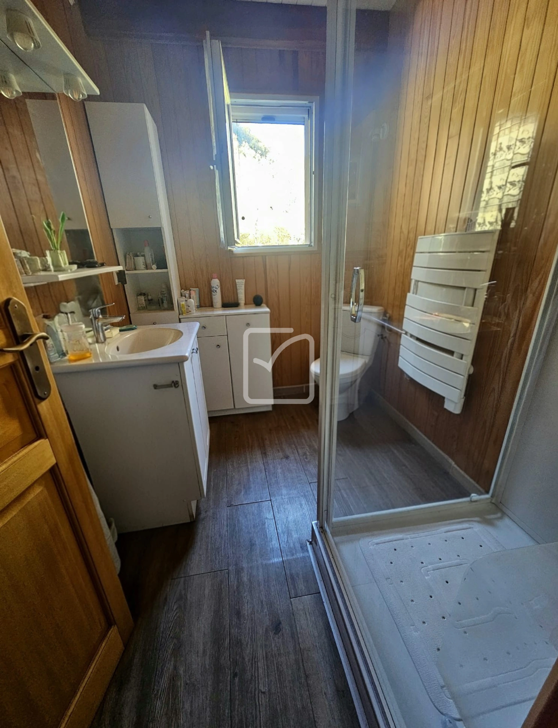 Son revêtement extérieur en CanExel assure une esthétique bois chaleureuse, tout en garantissant une grande durabilité et une résistance optimale aux intempéries. Les volets en aluminium isotherme viennent renforcer l'isolation et le confort thermique de l'ensemble.