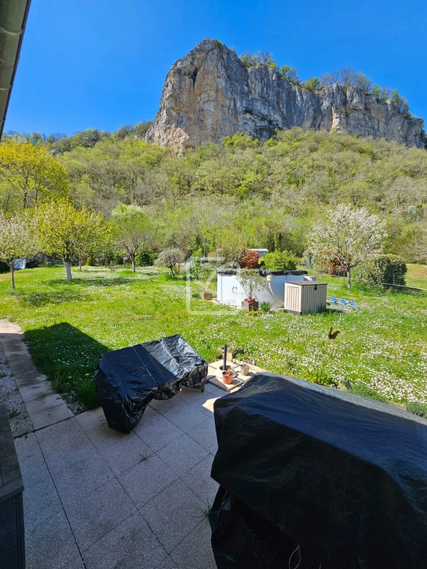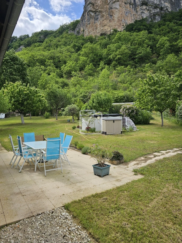 Le terrain de 1 700 m2 comprend un garage et deux abris de jardin. Côté confort, la maison est équipée d'un chauffage au sol électrique, d'un insert cheminée, ainsi que de deux chauffe-eaux (solaire et électrique). Une cuve de récupération d'eau enterrée de 6 000 L permet également d'optimiser la consommation d'eau.