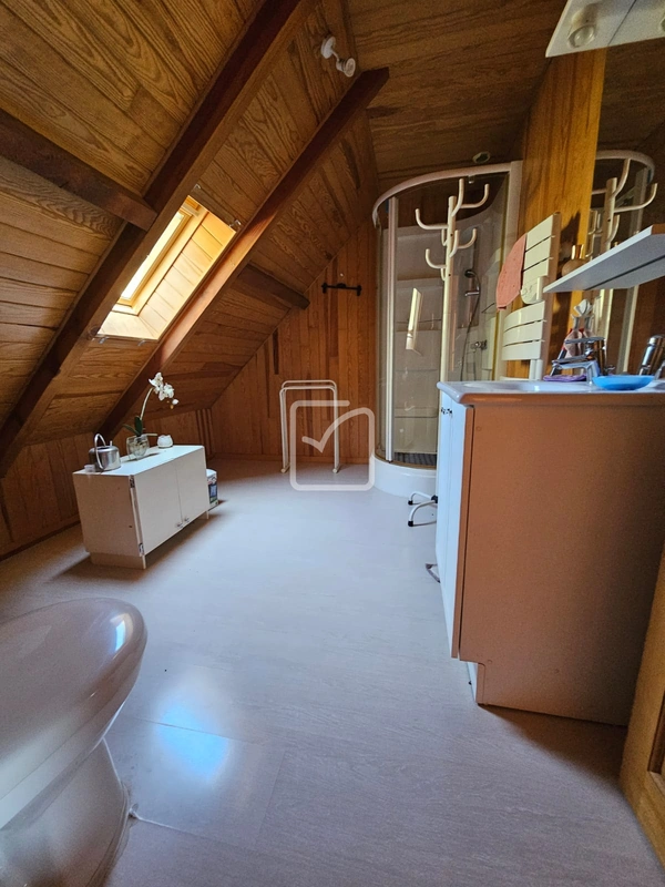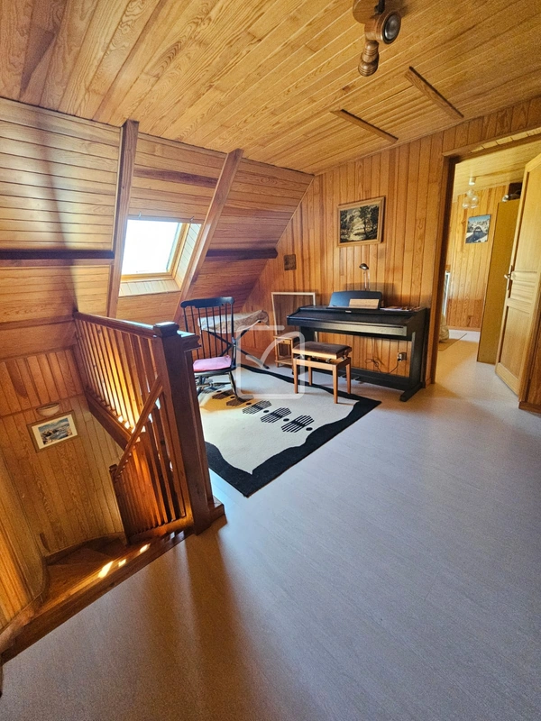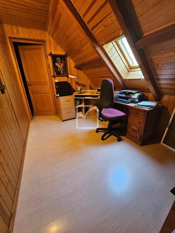 La maison se compose au rez-de-chaussée d'un salon spacieux avec cuisine ouverte, d'une chambre, d'une salle d'eau et d'un cellier. À l'étage, on trouve trois chambres supplémentaires, une salle d'eau, un bureau et une mezzanine lumineuse.