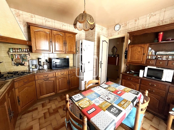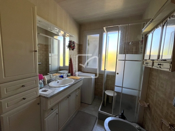 Garage pouvant accueillir 2 voitures , belle terrasse , chauffage gaz , menuiseries PVC , double vitrage .
