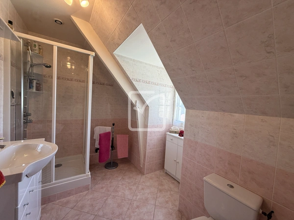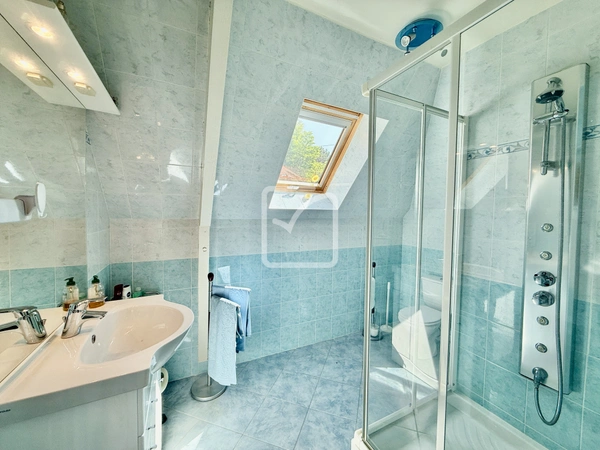À l'étage, trois chambres disposent chacune de leur propre salle d'eau et WC, offrant un confort optimal pour une grande famille ou pour accueillir vos hôtes en toute intimité.