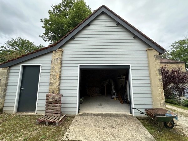Cette propriété comprend également des dépendances : un grand garage en pierre de 38m2 et un atelier de 30m2.