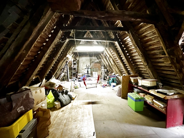 À l'étage, vous découvrirez un appartement lumineux de 75m2 comprenant deux chambres, un séjour avec cuisine ouverte, une salle d'eau et des WC séparés. 50m2 de combles aménageables sont également disponibles.