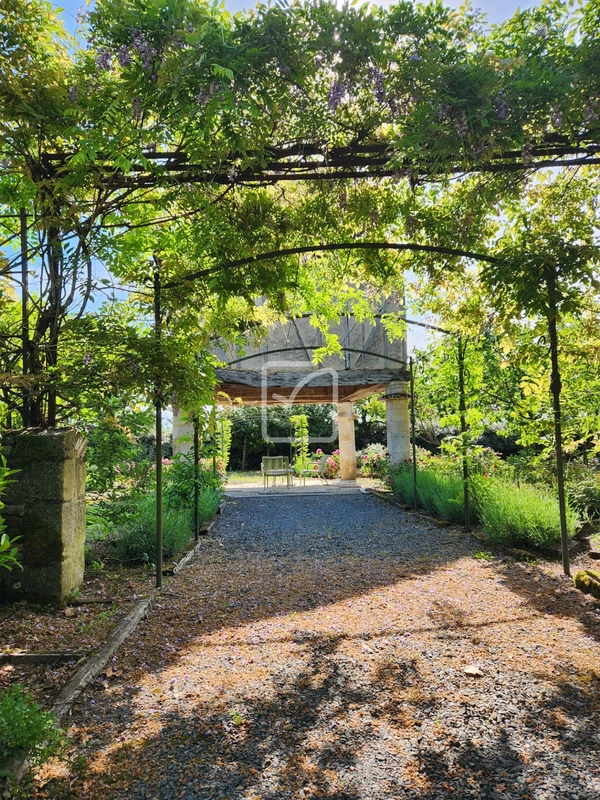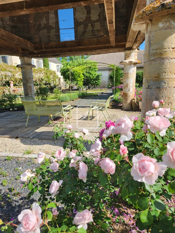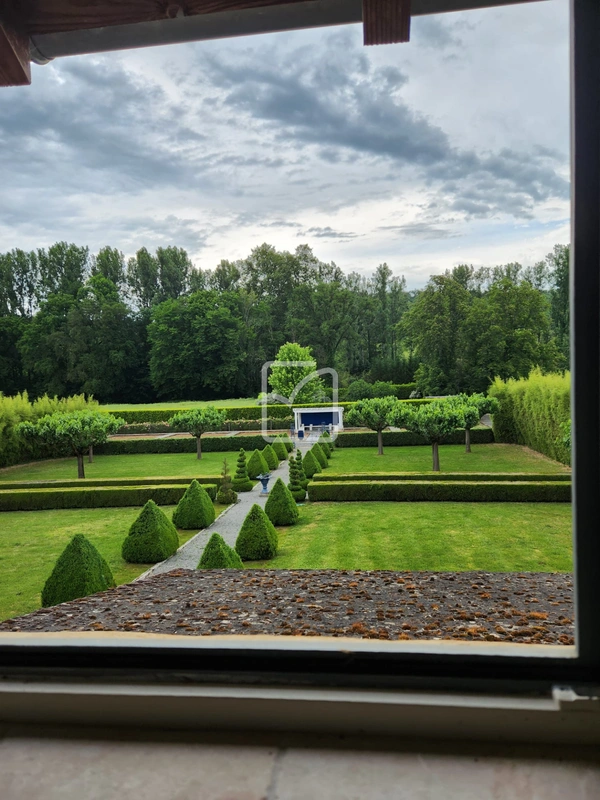 À l'extérieur, de sublimes terrasses et cours prolongent les espaces de vie, agrémentées d'un salon, salle à manger et d'une cuisine d'été. De charmantes allées à travers le domaine, invitant à la promenade parmi de nombreux espaces arborés, un pigeonnier entouré d'arbres fruitiers.