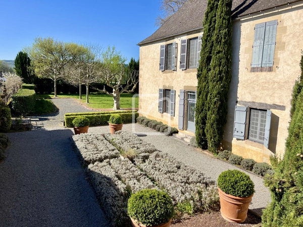 En Périgord Noir, ce somptueux manoir et ses dépendances, déploie tout son charme et son élégance sur un parc paysager de 1,8 hectares.