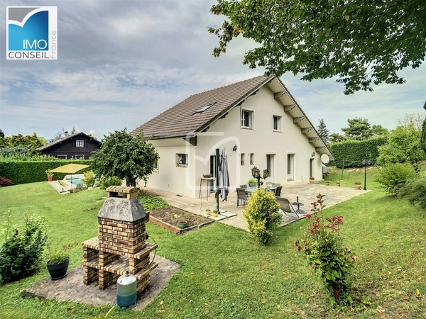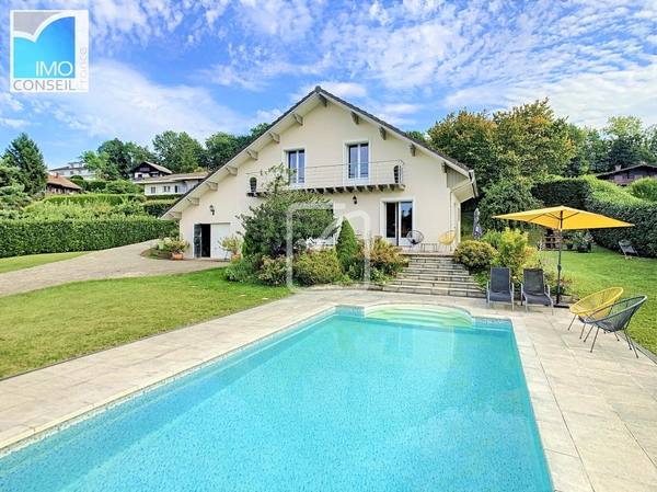 Située dans un cadre paisible sur la commune de Sciez, cette villa de 135 m2 habitables (173 m2 utiles) offre un cadre de vie idéal, alliant confort et tranquillité. Implantée sur un terrain clos et arboré de 1 450 m2, elle bénéficie d'une belle terrasse exposée plein sud et sans vis à vis ainsi qu'une piscine chauffé, parfaites pour profiter des beaux jours.