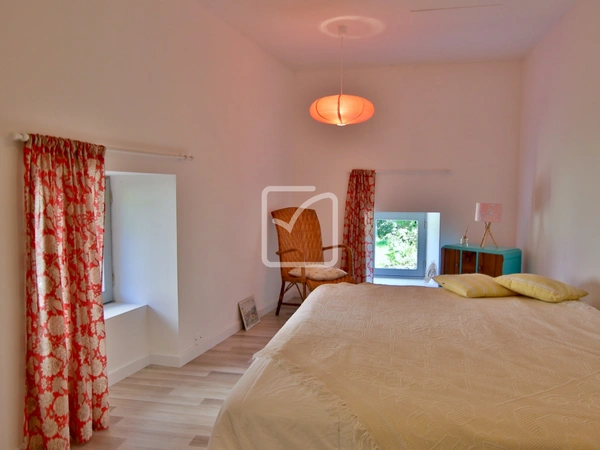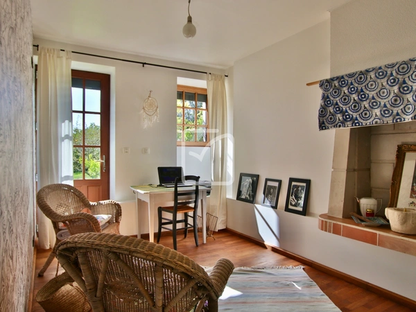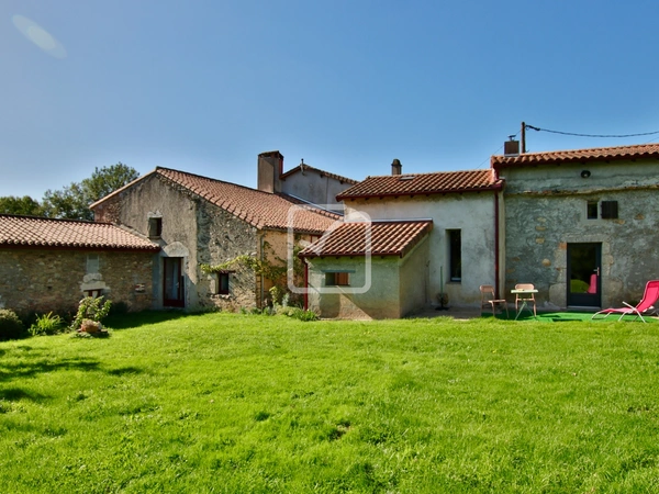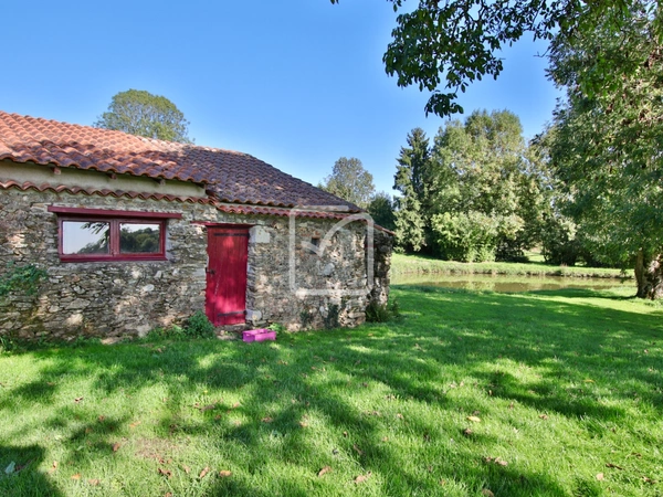 Dans la campagne vallonnée de Gâtine, propriété qui s'étend sur plus de 8000m2 de terrain, avec un étang d'env. 1000m2, bois et jardin arboré. Vous disposerez de 2 logements de caractère et de plusieurs dépendances (serre-bois, abris de jardin et grange). La maison principale propose sur env. 145m2 une distribution des pièces originale comprenant : Cuisine / salle à manger qui s'ouvre sur un salon avec cheminée, espace parental avec son petit salon, une salle d'eau/wc et une grande chambre quelques marches plus bas. De l'autre côté de la maison, une 2ème chambre, une salle d'eau et wc séparés. À l'étage, pièce palière qui mène à une 3ème chambre avec poutres apparentes, un wc et un grenier. Pièces de vie exposées Sud, chauffage au sol par géothermie. Un logement indépendant d'env. 50m2, juste à côté, offre un séjour avec poêle à bois, une belle cuisine aménagée, une salle d'eau et une buanderie. Grande chambre mansardée au 1er étage : un gîte cosy & confortable ! Cet ensemble de bâtisses en pierre respecte la caractère typique de La Gâtine, une visite s'impose ! Votre contact : Pierre Dessombs 0684694900 - pierre.dessombs@imoconseil.com - Fluent english speaking local agent