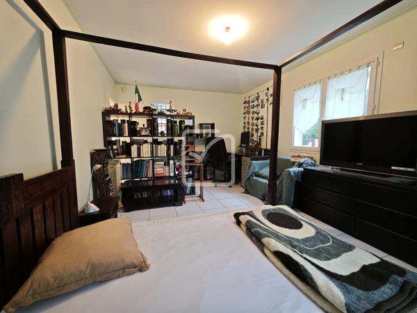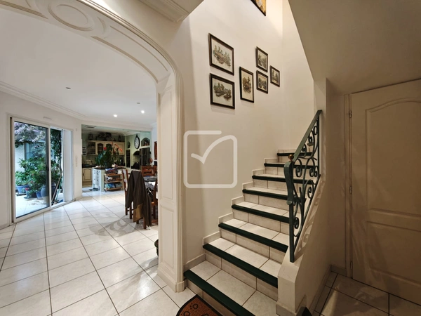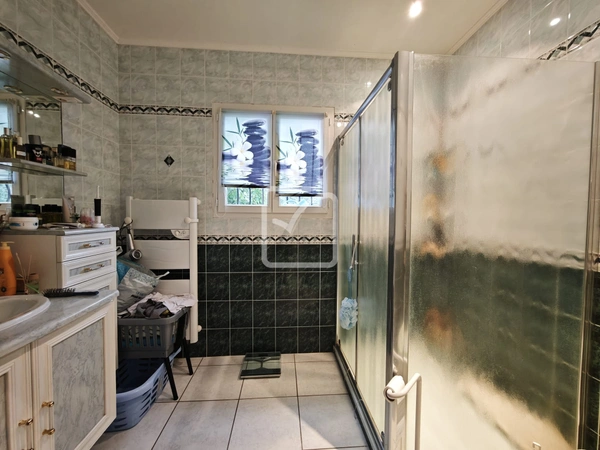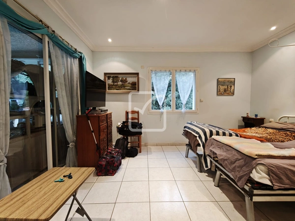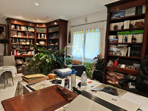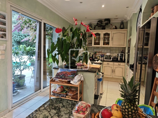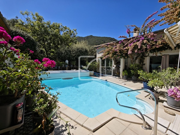 Belle maison d'habitation aux volumes généreux, dans cadre très agréable au calme et à la vue magnifique, comprenant une grande pièce de vie cuisine, séjour, salon, un palier bibliothèque/bureau, un wc, et une suite parentale en rdc avec sa véranda sur piscine.