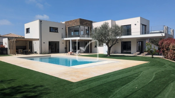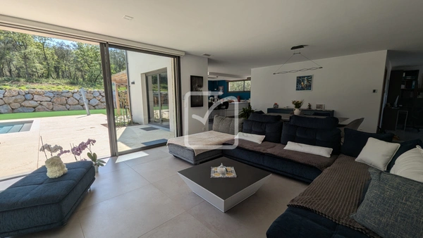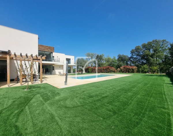 Superbe et lumineuse villa contemporaine d'environ 280m2 sur 1814m2 de terrain arboré.
