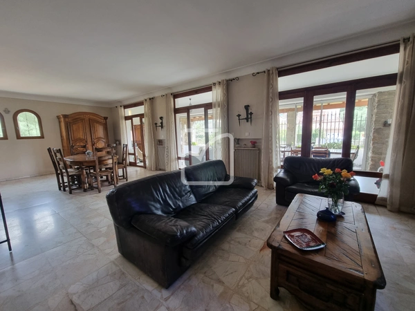 - Au1er étage, un très grand salon/séjour sur terrasse véranda équipée d'une cuisine d'été, une belle cuisine équipée sur loggia et une suite avec salle d'eau, un wc/lave-mains.