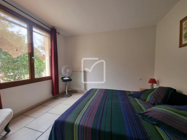 - En RDC, une grande pièce de vie salon/séjour/cusine américaine équipée, 2 suites comprenant pour l'une une salle de bains et pour l'autre une salle d'eau, wc/lave-mains. 2 garages/remise.